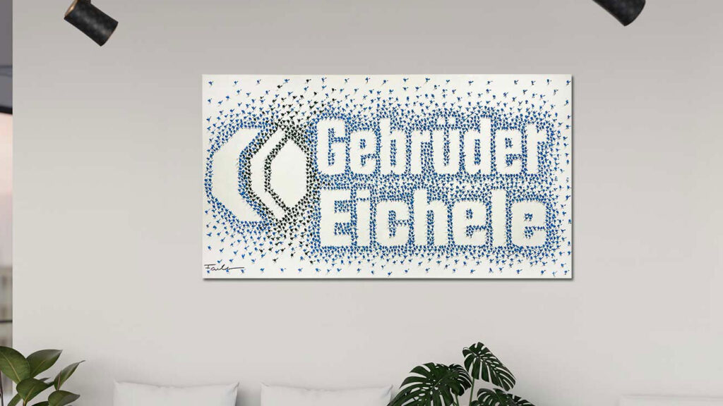 Gerne setzen wir Ihre Namen, Logos oder Ihren Firmenslogan individuell als handgemaltes Unikat auf Leinwand um. Wir entwickeln einzigartige Ideen für ihr Büro, ihre Praxis, ihr Hotel oder gestalten Ihr Firmenlogo als handgemaltes Unikat.