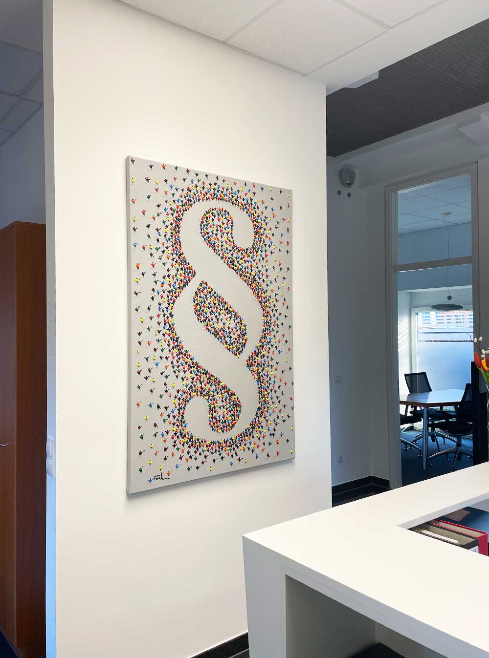 Unsere handgemalten Pointers verbinden diese beiden Welten zu einem einzigartigen Werk. Entstanden ist dieses Werk im Jahr 2023 als Auftragsarbeit für eine Kanzlei.