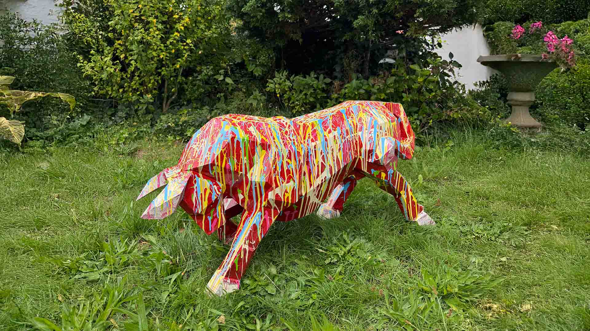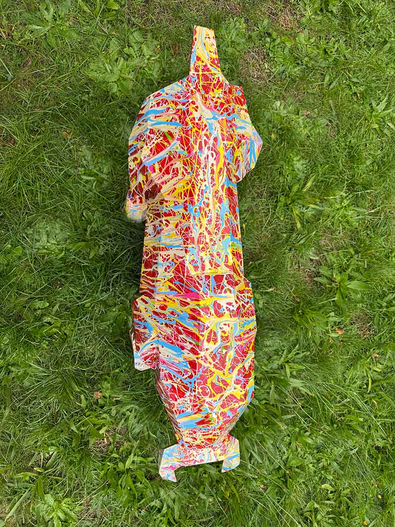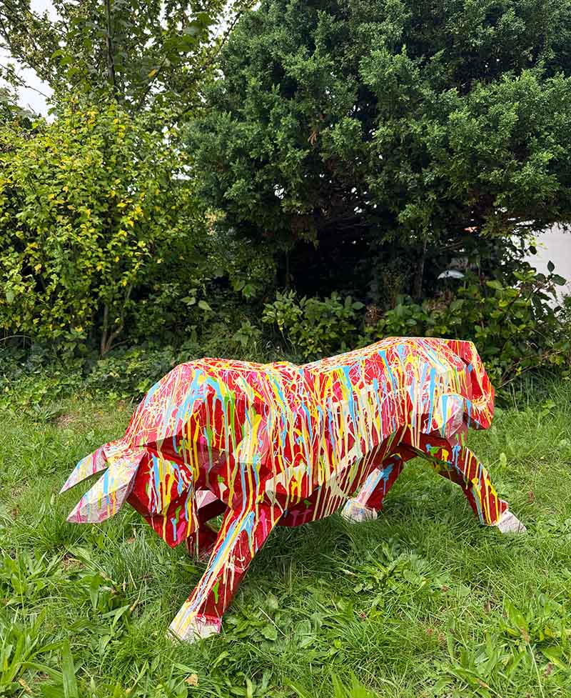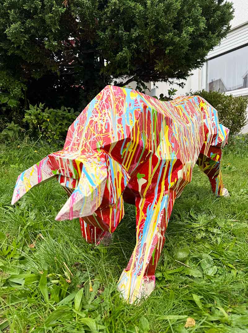 „Bunter Bulle“ Stier-Skulptur der Künstlerin Valentina.