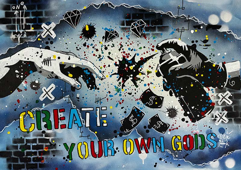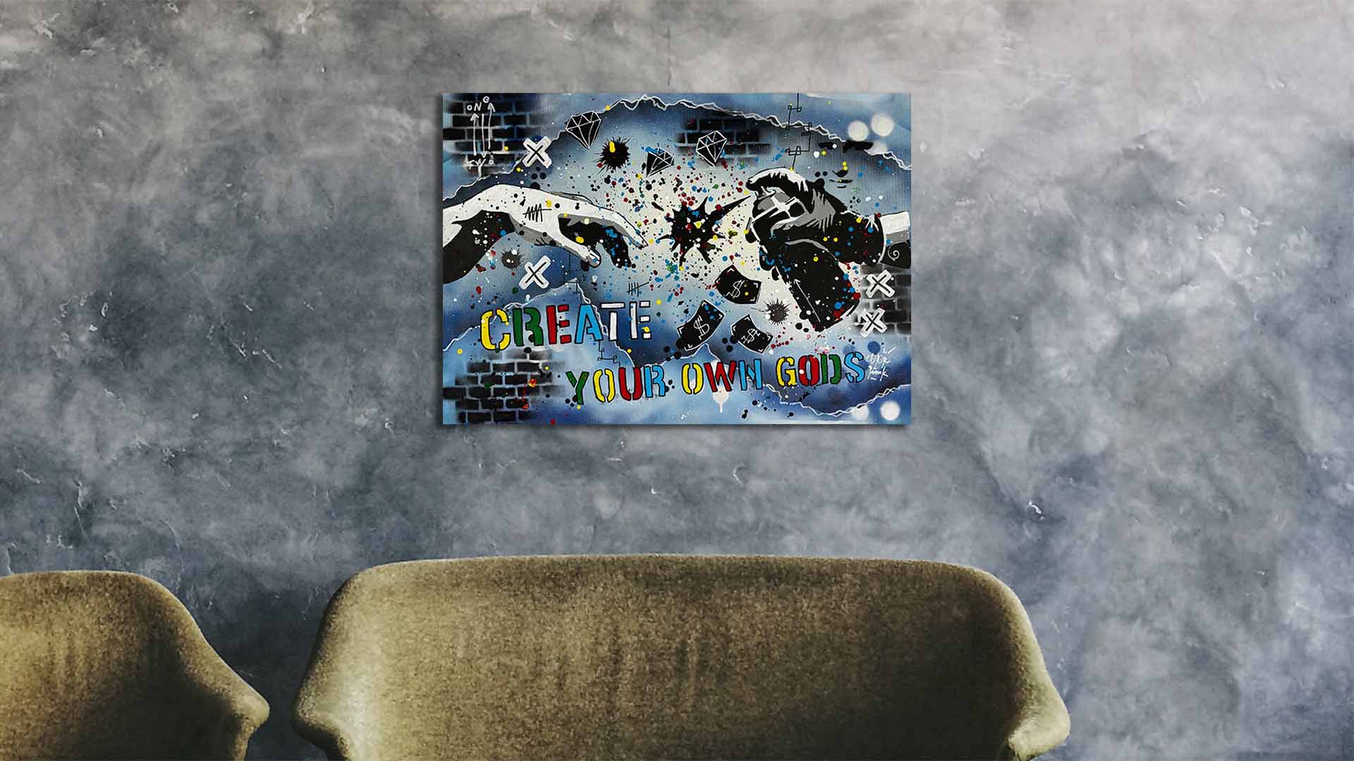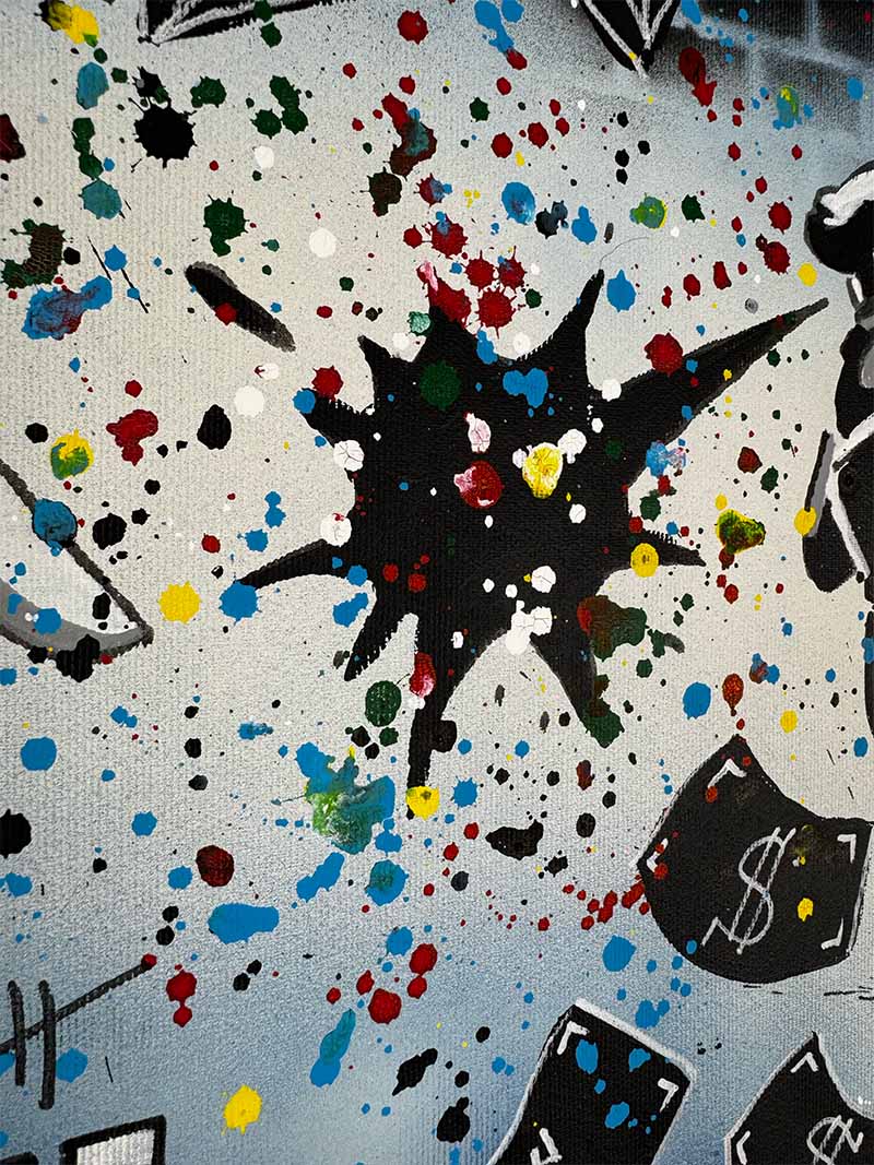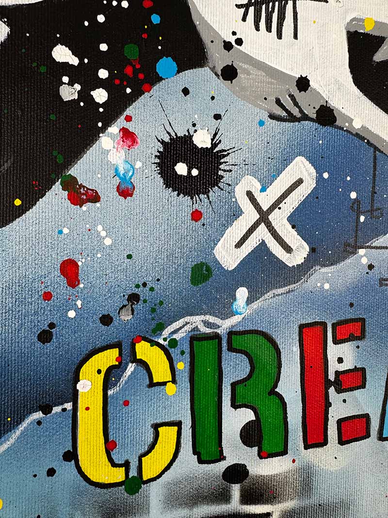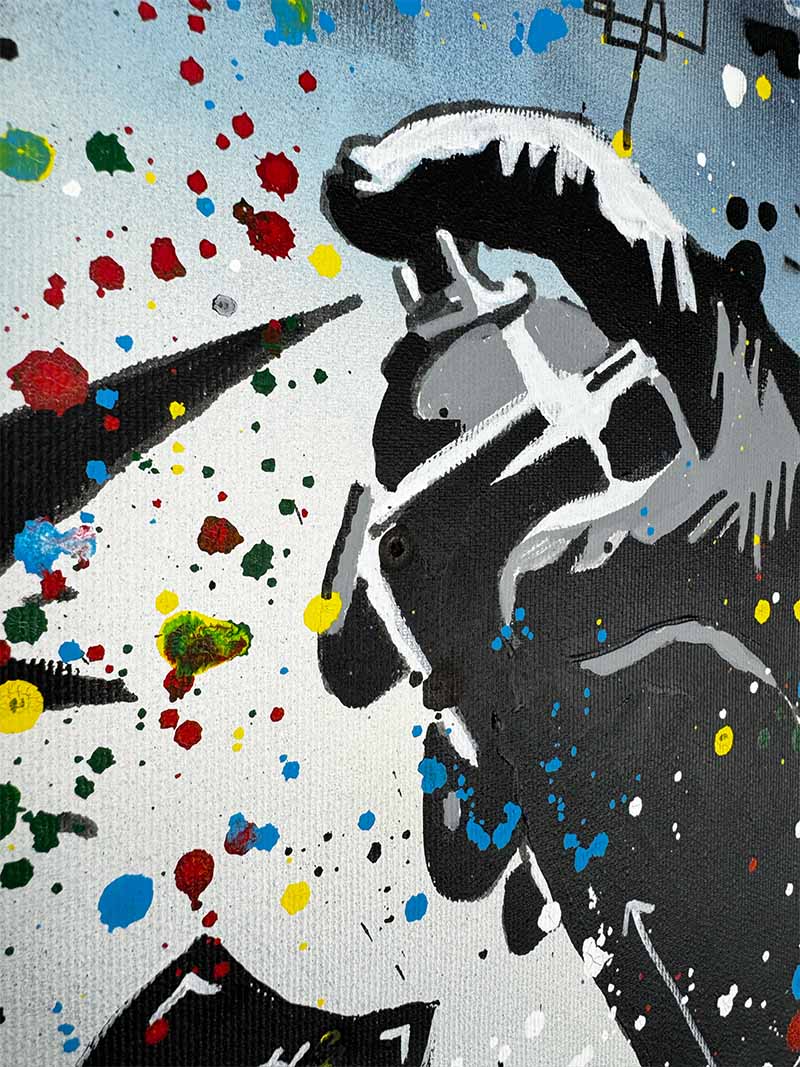 Handgemaltes Acrylgemälde auf Leinwand mit Spray Technik.