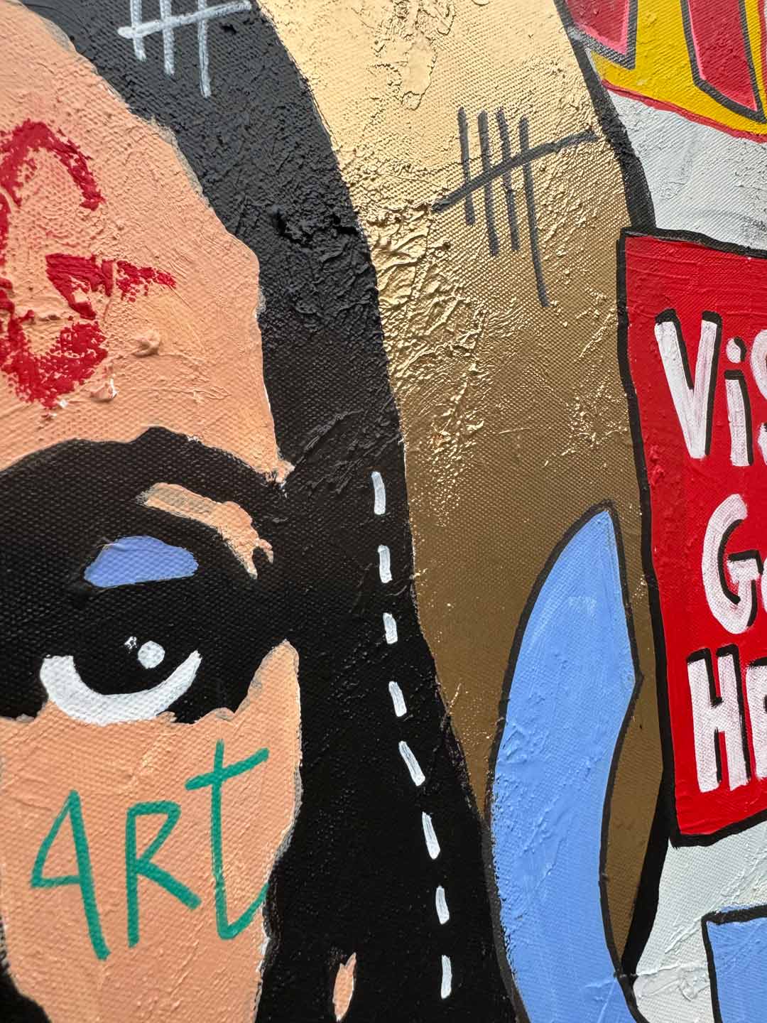 Handgemaltes Acrylgemälde auf Leinwand mit Spray Technik.