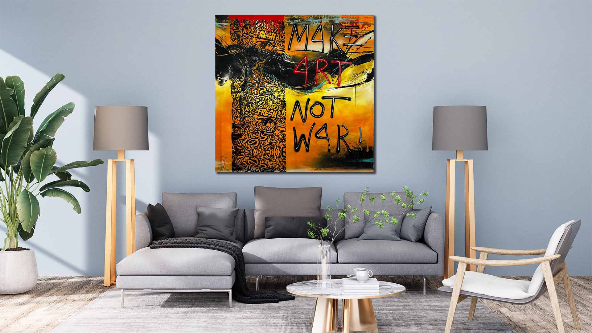 Das Motiv trägt den Titel „Make Art Not War“