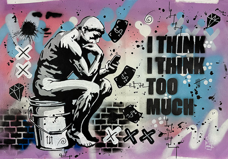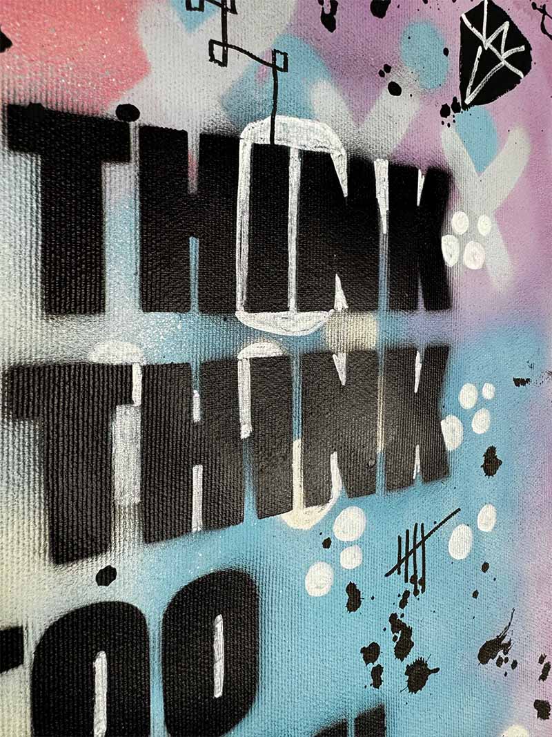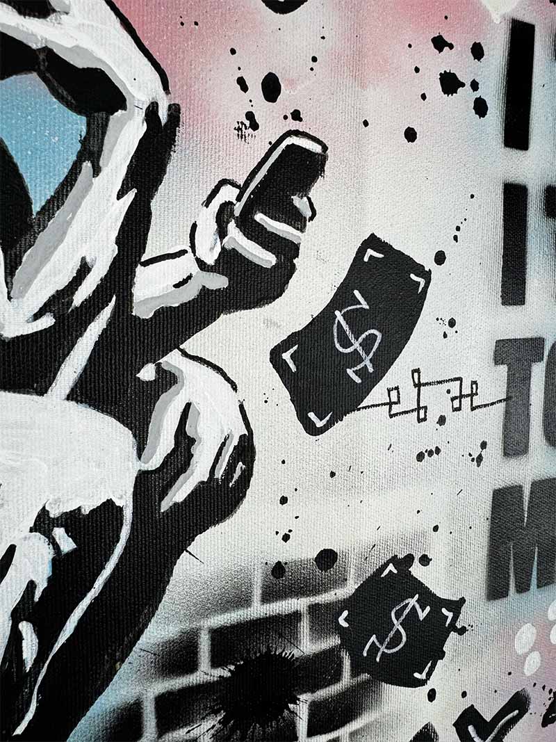 Handgemaltes Acrylgemälde auf Leinwand mit Spray Technik.