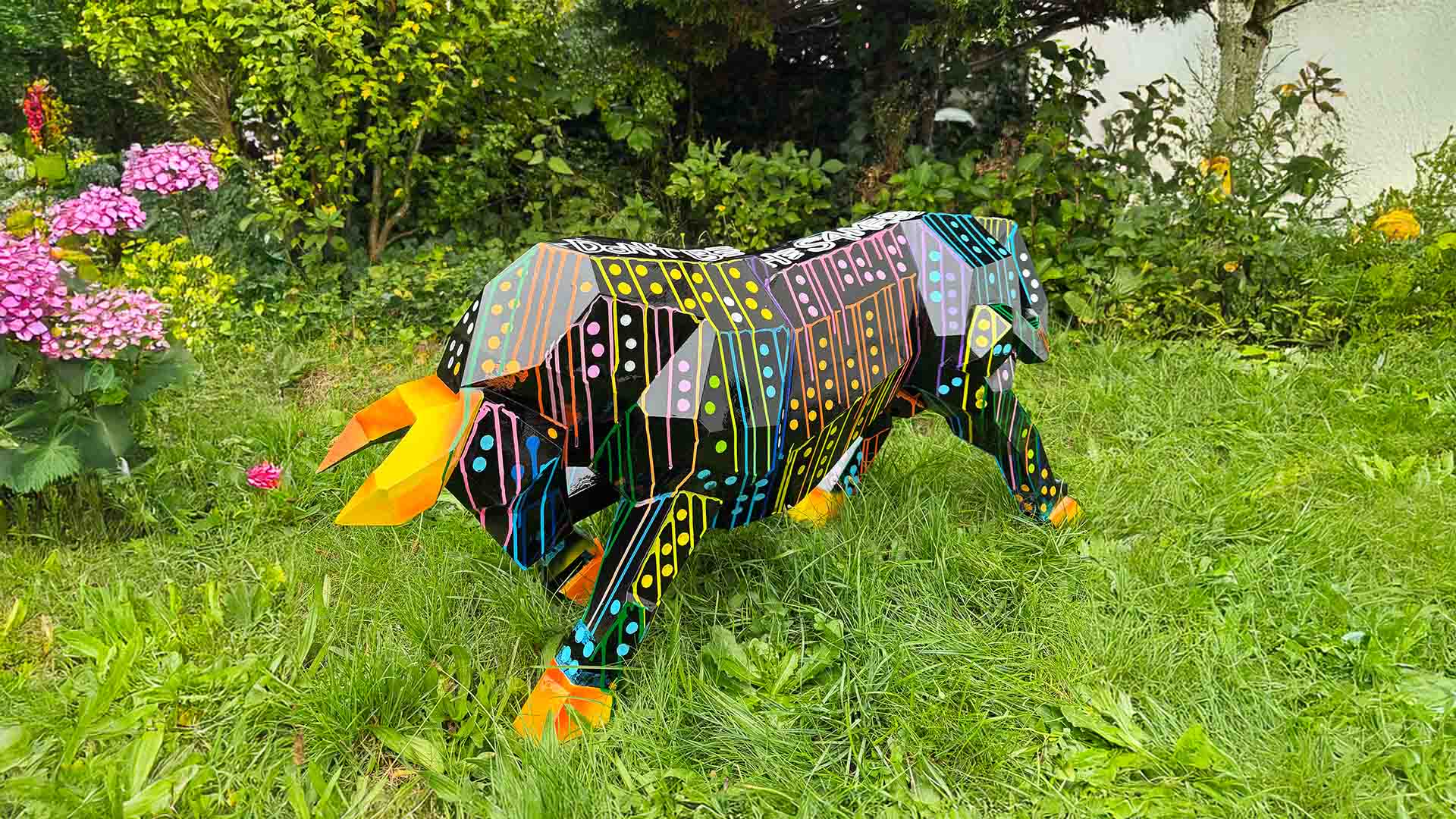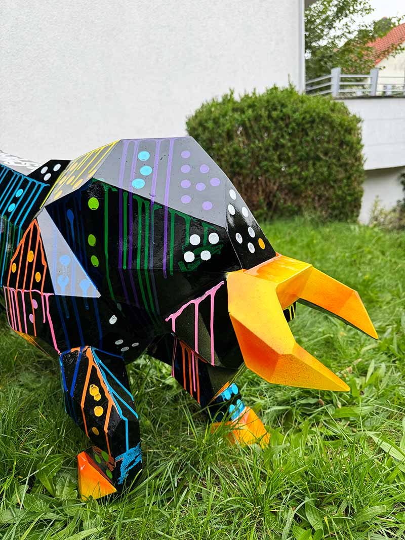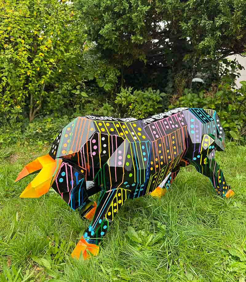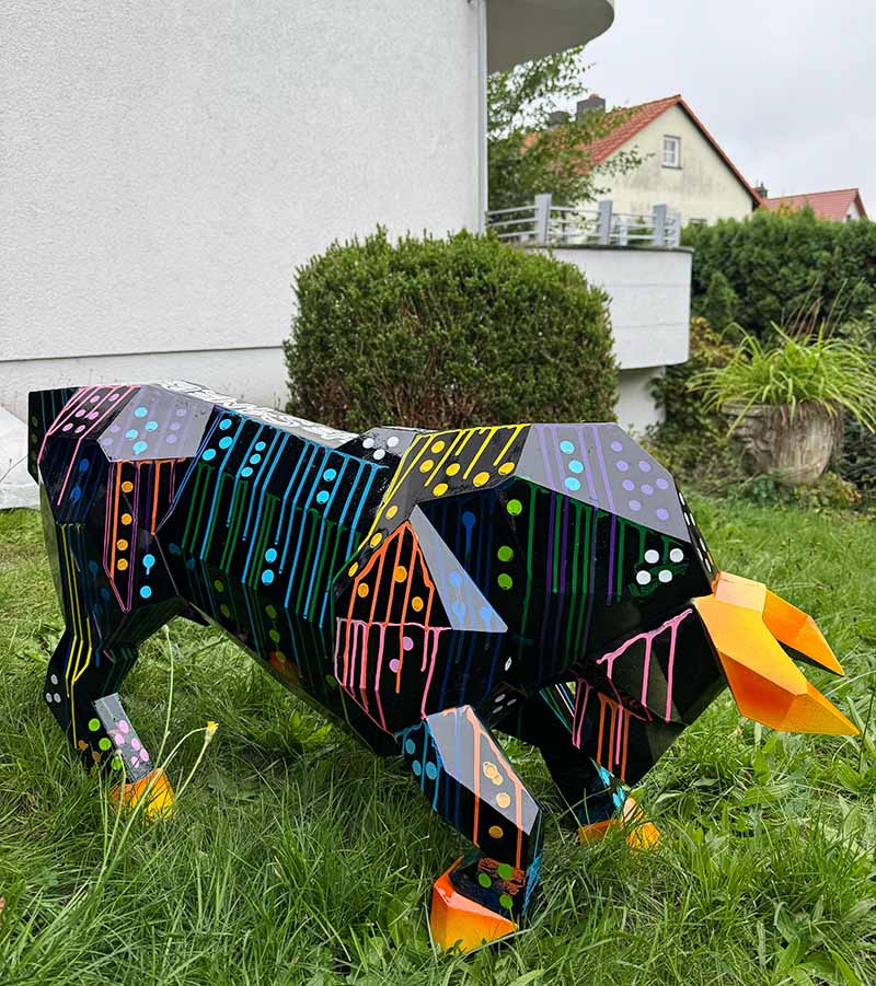„Viva La Color“ Stier-Skulptur des Künstlers Color Punk.